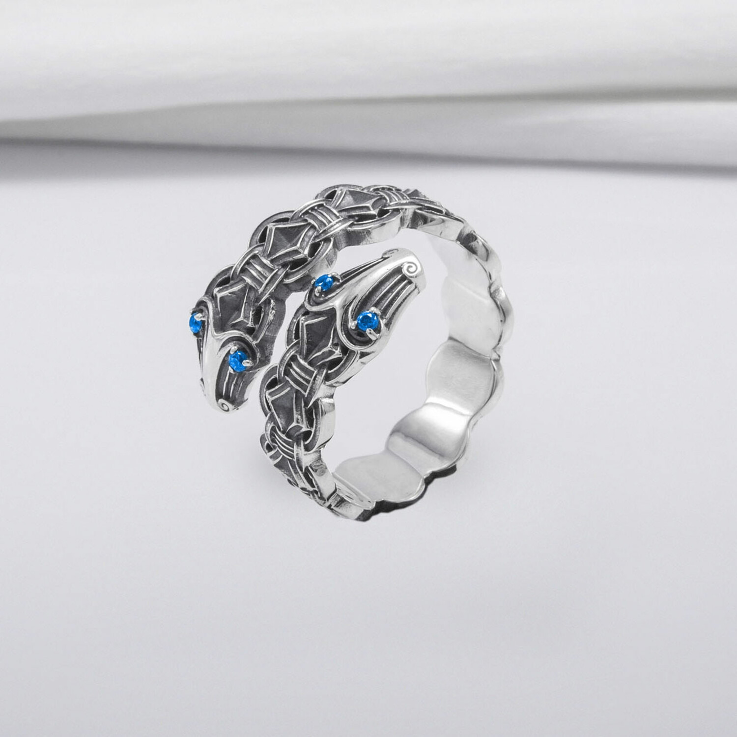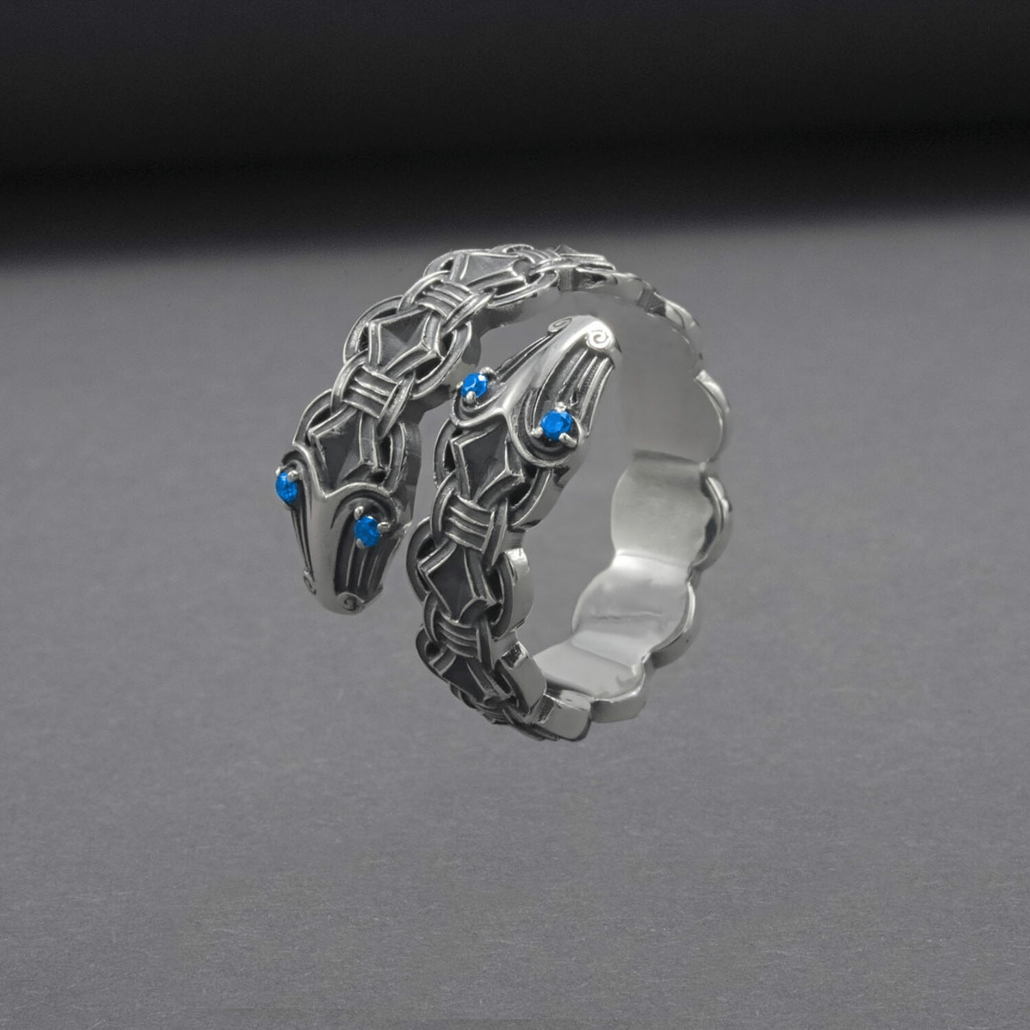 Sterling Silver Double-Headed Serpent Ring // Silver